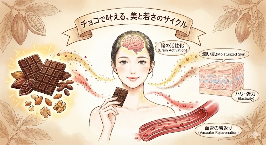 高級な美容液やサプリメントも良いですが、実は私たちの身近にある「チョコレート(カカオ)」が、科学的に証明された強力なアンチエイジングフードであることをご存知でしょうか。