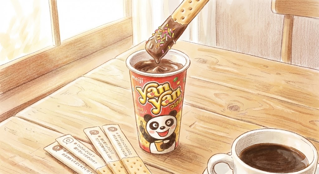 世界展開: 実はこれ、日本国内だけでなく海外(特にアジア圏やアメリカ)でも大人気。シンガポールの明治工場などでも生産されており、世界中の子供たちが「Yan Yan」をディップしているのです。